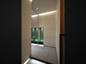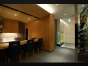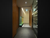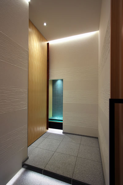 床 :洗い出し、400角御影石ジェットバーナー仕上げ、デザインアートガラス