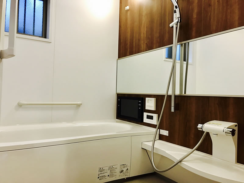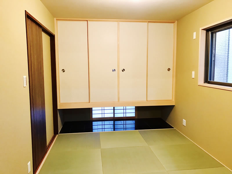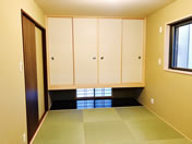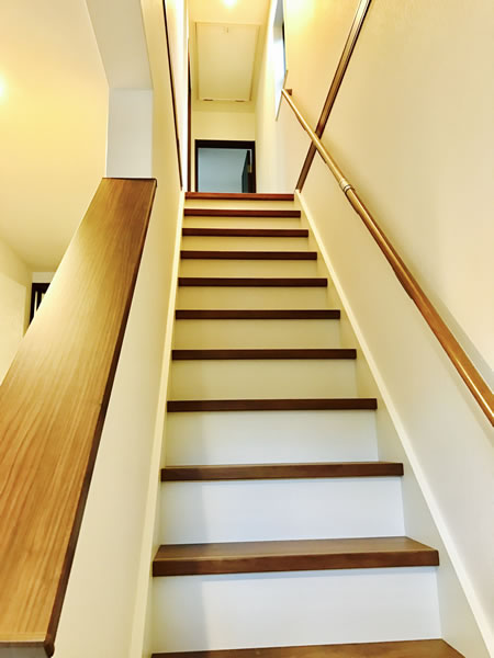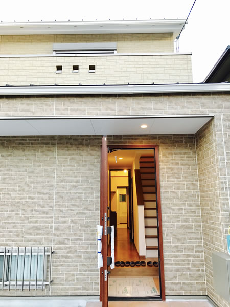 木造カラーベスト葺き2階建て 外部:屋根:カラーベスト 壁:窯業系サイディング 内部:床フローリング、一部CFシート貼、一部畳、一部代理 壁:クロス貼、一部エコタイル貼、一部キッチンパネル貼 天井:クロス貼 設計:TSアーキテクツ
