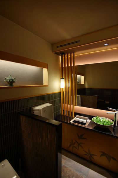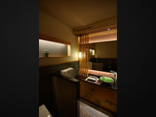 洗面カウンター:御影石磨き、木製格子