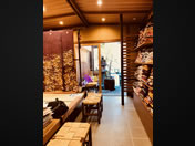 外部:屋根:瓦葺 外壁:モルタル塗り吹付塗装、杉板貼キシラデコール塗装 外部巾木:墨モルタル 内部:天井:杉板目透かし貼、網代ベニヤ貼、漆喰塗り 壁:漆喰塗り、ジュラク塗り 床:墨モルタル、磁器質タイル貼