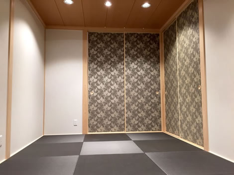 オーダーメイドスーツでお馴染みのMANO JAPAN。 お客様との打合せルームをポータブル和室空間「京・和室」で造作。 洋服スーツとモダン和室の融合がお客様の落ち着きをもたらします。 たった1日で素晴らしい和室空間となりました。